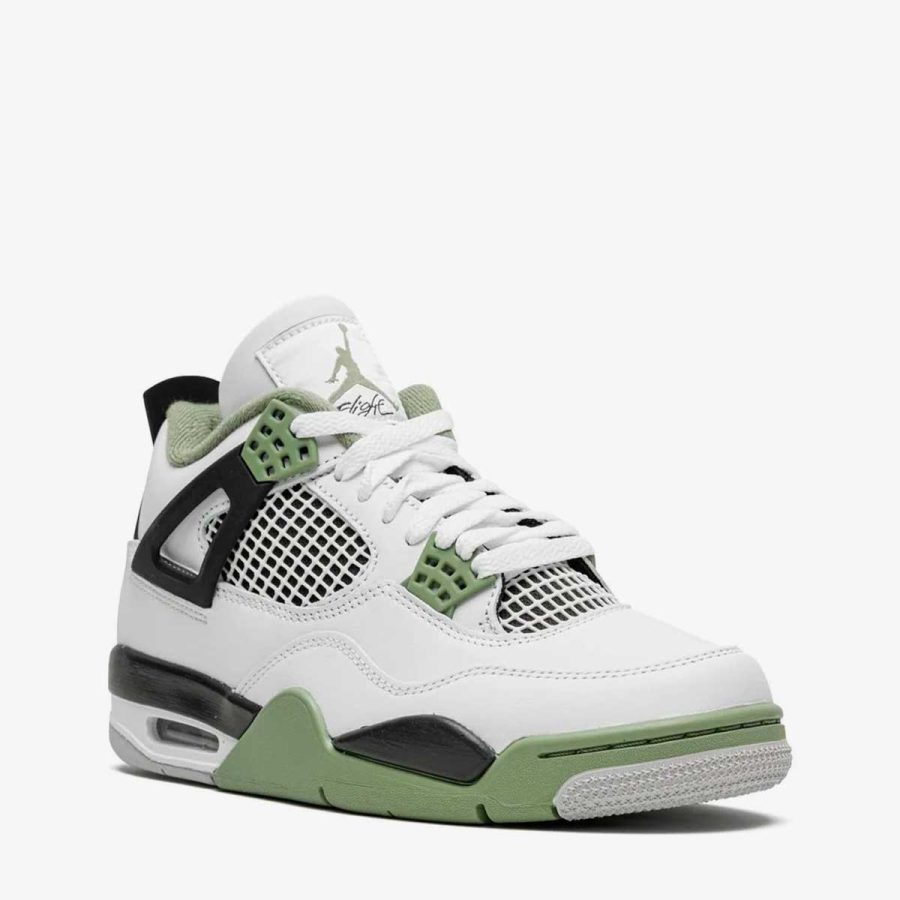 Designed by Tinker Hatfield, the Air Jordan 4 sneakers made their debut in 1989, when Michael Jordan sported them at an NBA All-Star Game. The mid-top silhouette is defined by panels of mesh and TPU and boasts the iconic Jumpman figure on the heel. Released in February 2023, this iteration has a colour-block design where a signature seafoam-green shade stands out.