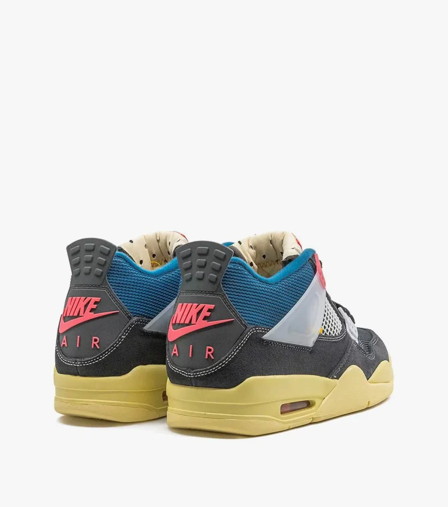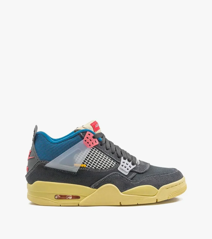 One of Jordan’s most anticipated collaborations of 2020, these off noir, brigade blue and dark leather and rubber x Union Air Jordan 4 SP “Off Noir” sneakers were designed with LA-based boutique Union. The mid-top pair feature contrasting panels of leather, sitting alongside mesh overlays. Finished with a pink plastic lace clip and padded ankle, the pair are a highly contemporary finish for sneakerheads. Featuring a round toe, a flat rubber sole, a lace fastening, a branded insole, mesh panels and a logo patch at the tongue. Supplied by a premier sneaker marketplace dealing with unworn, already sold out, in demand rarities. Each product is rigorously inspected by experienced experts guaranteeing authenticity.
