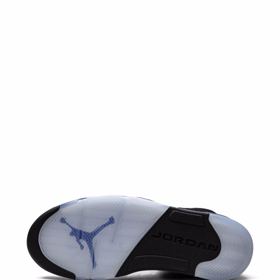 The Air Jordan 5 Retro now arrives in a new colour scheme. Boasting a simple black base colour, this sneaker stands out thanks to its silver reflective tongue and blue accents throughout. Jumpman branding appears also on the tongue and at the rear. Underneath, a rubber sole finishes the look with comfort.