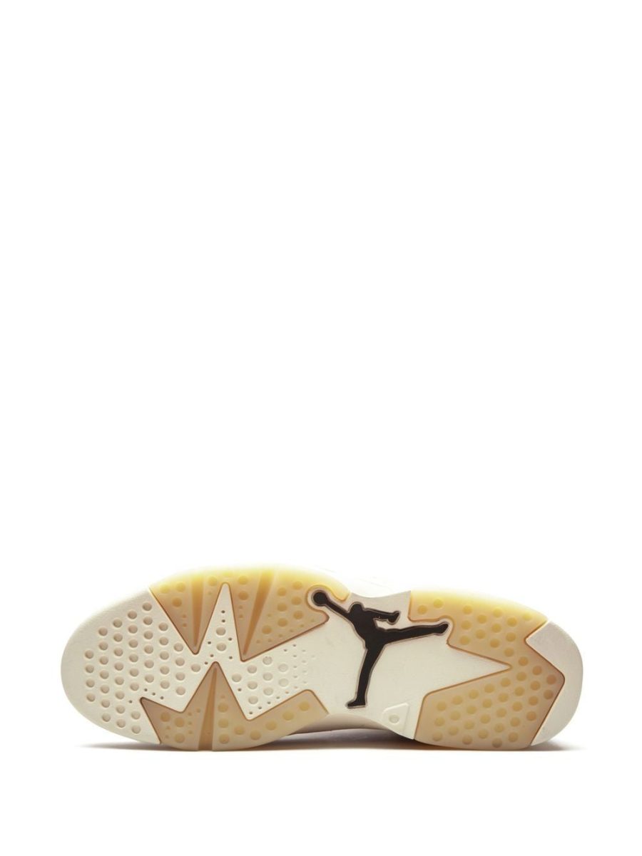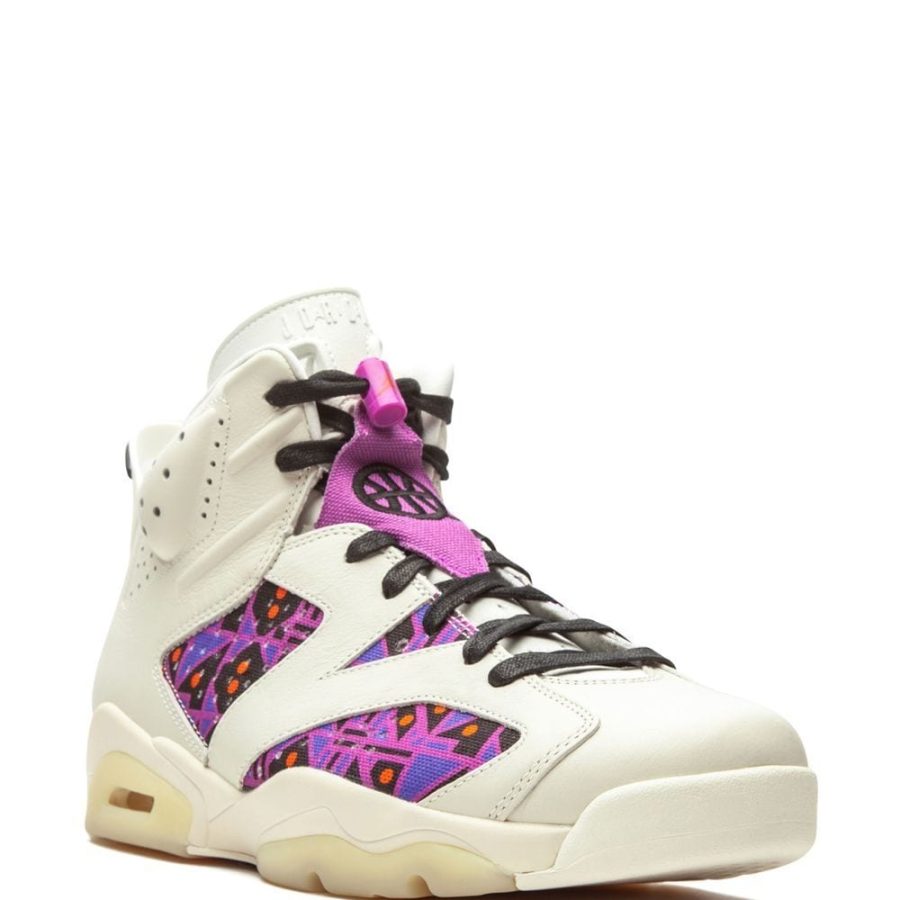 Get ready to score. Crafted from white leather and decorated with geometric printed panels, these Air Jordan 6 sneakers from Jordan are casual, comfortable and ready to give you a life up. Alley-oop.