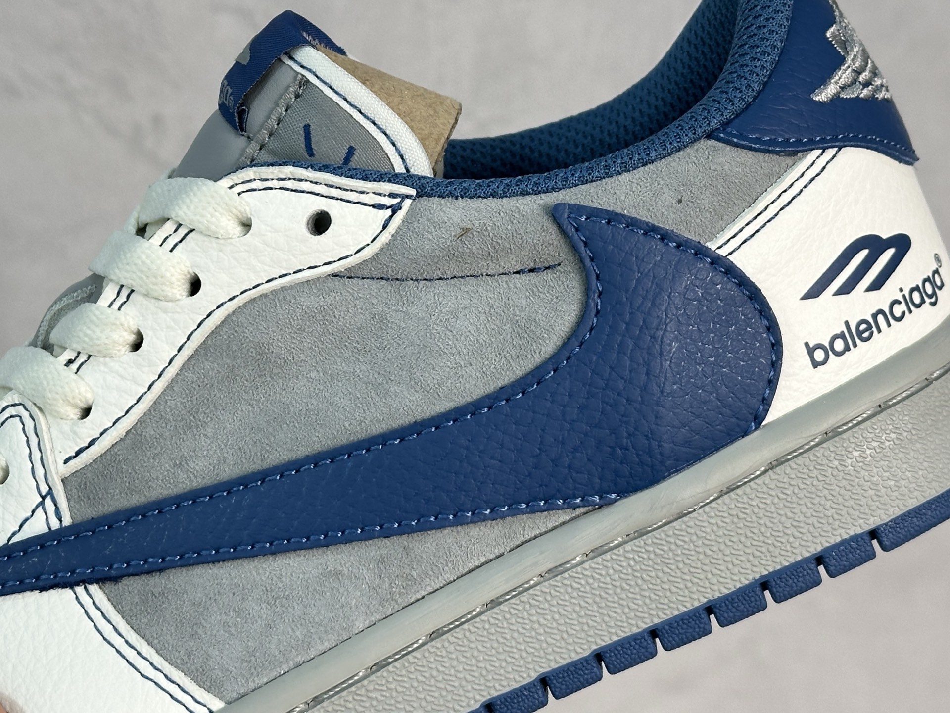 The multi-party joint collaboration combines Travis Scott’s unique musical style, Balenciaga, Fujiwara Hiroshi’s individual design style and Jordan brand’s classic elements, making it a pair of shoes with unique identity and value. The fresh and three-dimensional appearance and the joint logo highlight its unique identity. This color scheme shows vitality and fashion sense and is visually eye-catching. The texture of the shoe body and the delicate details make it look high-end and full of style. This “inverted hook” joint is a perfect combination of design and creativity. It integrates the individual styles of multiple parties and is a highly anticipated trendy shoe.