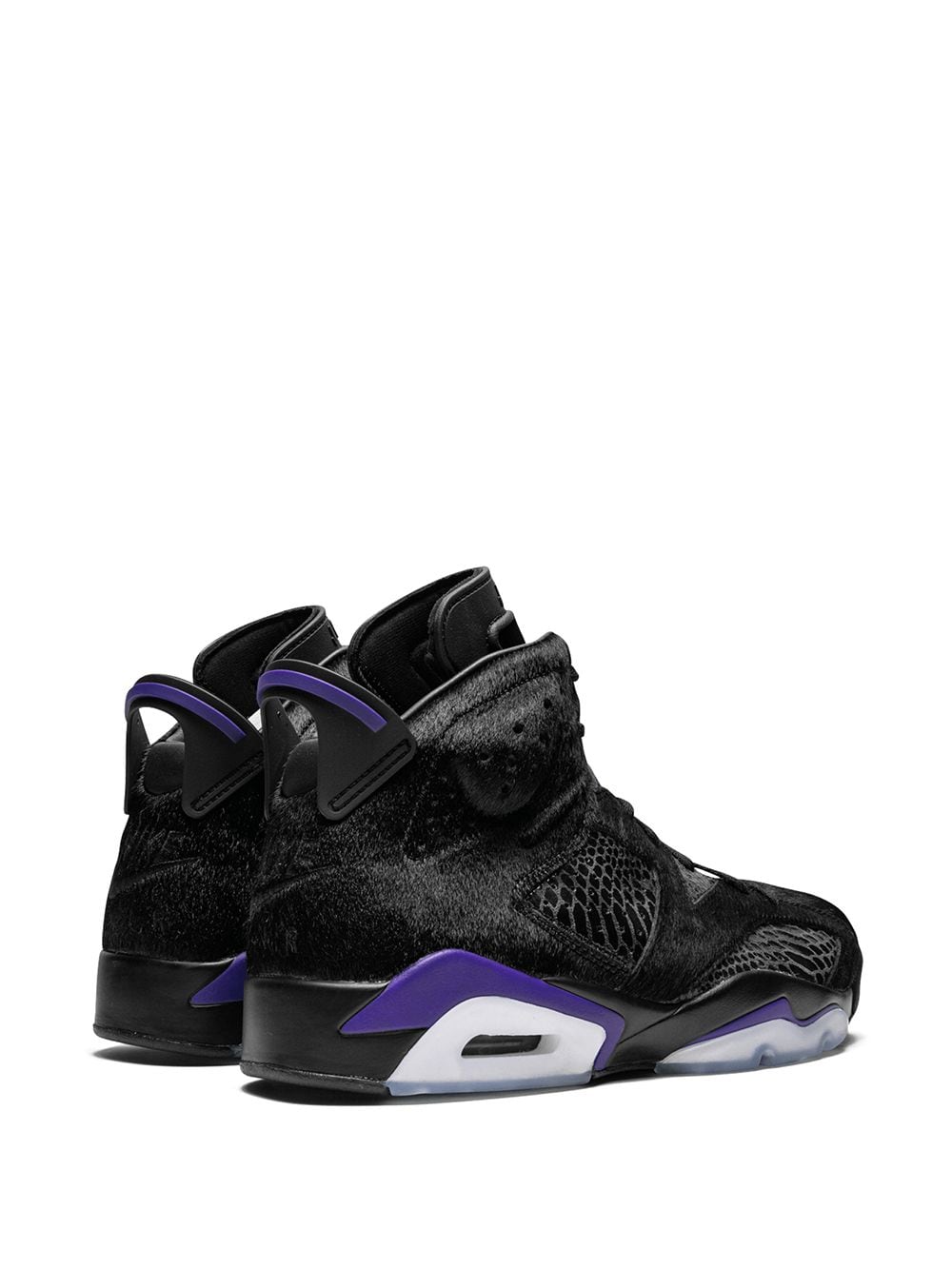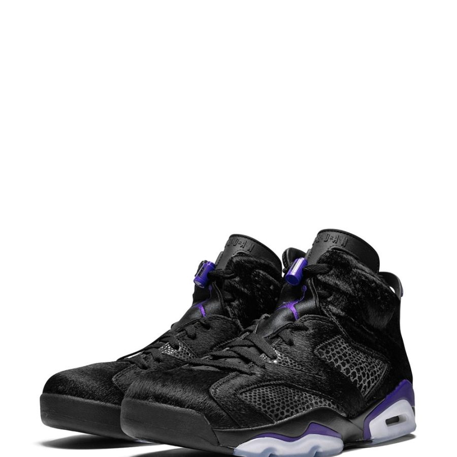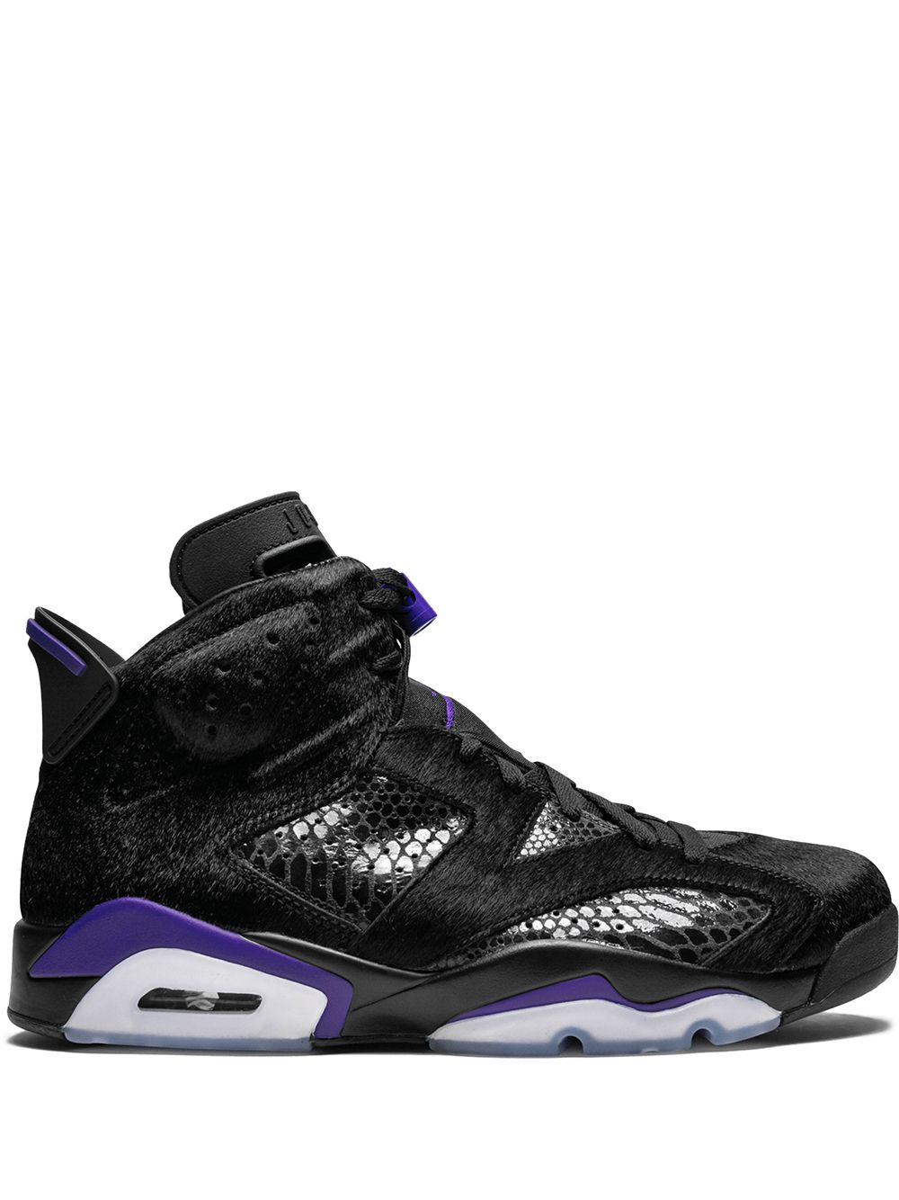 Black leather Air Jordan 6 Retro SP sneakers from jordan featuring a round toe, a snakeskin effect, faux fur details, a lace-up front fastening, a brand embossed tongue and a rubber sole. Supplied by a premier sneaker marketplace dealing with unworn, already sold out, in demand rarities. Each product is rigorously inspected by experienced experts guaranteeing authenticity.